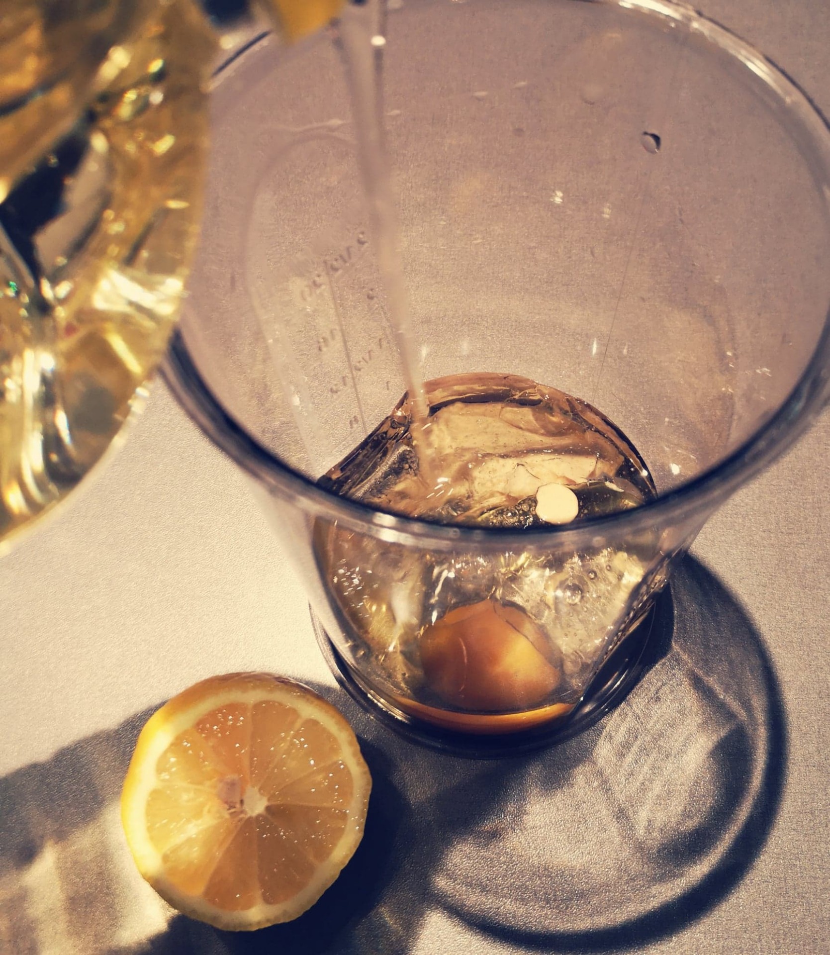 In een maatbeker breng je het ei, mosterd, p en z, citroensap, giet daarbij een hoeveelheid olie.